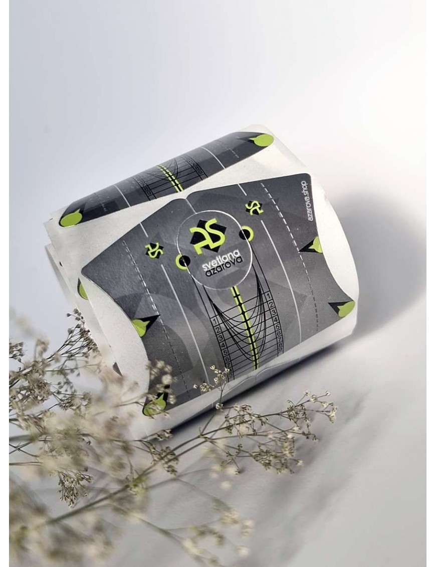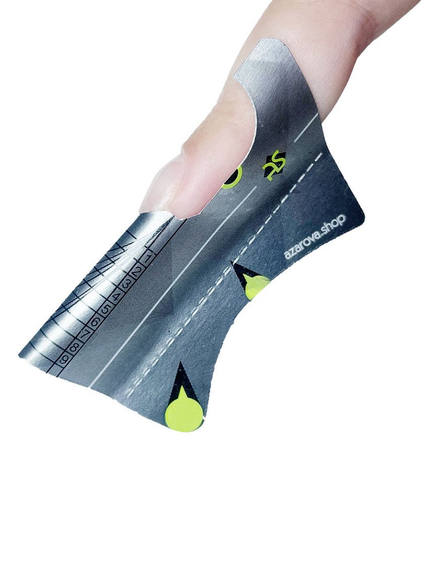 Авторские формы Светланы Азаровой состоят из четырех слоев - слой ламинации, алюминивый слой, плотная бумага и каучуковый клей последнего поколения. Не требует подклейки окошка или метала. Верхняя часть форм расширена для качественного крепления даже на узких пальцах и мизинцах. Линия перфорации уже разделена и не требует разрывания или разрезания. Окошко без готовых "ушек" позволяет вырезать индивидуально под каждый ноготь форму, чтоб она не имела зазоров по бокам. Удобная центровка и разметка для арочного, классического и креативного моделирования. Линии перфорации по бокам дают возможность создать одинаковую и равномерную арку для любых ногтей. Цвет форм позволяет видеть даже прозрачную подложку, а алюминий отражает уф-лучи для лучшей полимеризации.
